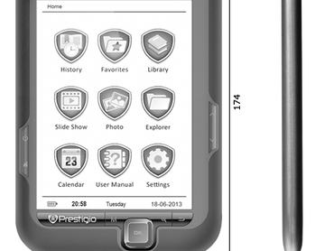 A Prestigio MultiReadere olcsó, jó felbontású, 4 gigabyte belső memóriája mellett bővíthető SD kártyával, Linuxot futtat, sokféle formátumot kezel (PDF, FB2, HTML, PDB, EPUB, DOC, UTF-8 TXT, Unicode, MOBI, RTF) és képnézegető is van benne. Nagy hátránya, hogy nincs benne WiFi, így marad a lassan ósdinak tűnő kábeles verzió a könyvek áttételére. Itthon 21000 forinttól elérhető.