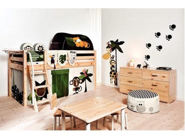 A másik népszerű bútoráruház hasonló kínálattal állt elő, mint a sárga-kék konkurencia, bár kicsit drágábban. Ha épp most rendezi be a szobáját, akkor akár egy komplett tematikus bútorcsaláddal is megajándékozhatja gyerekét, ahol ő lehet például az ostromlott vár kapitánya, vagy élhet a dzsungelben, állatok között. Persze ha nem muszáj, nem kell teljesen új szobát vennie, hiszen az emeletes ágyára szerelhető ötletes függönyökkel és pár ügyes kiegészítővel ugyanezt olcsóbban is megúszhatja. Ehhez válogathat cuki fogasok, tárolók és ágyneműhuzatok, valamint ülőzsákok között - bár ez utóbbiaknál azért lehet lényegesen szebbeket is találni.