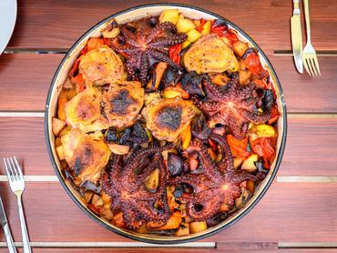 A húsos verzióhoz már volt szerencsém, tényleg nagyon finom, elképesztő omlósra párolódnak a harang alatt az összetevők. Állítólag az így készült polip is csodás. Jó tudni, hogy a legtöbb étteremben előre kell rendelni ezt az ételt, mert hosszan készül, és frissen a legfinomabb. Ha pedig otthon készítenél ilyet, itt találsz angolul egy receptet és részletes leírást hozzá.