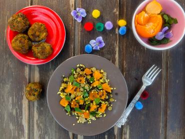 Mentás babakofta mandarinos lencsesalátával