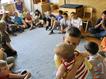 - Világos, színes, gyerekszobához hasonló tantermeket láttunk, ahol a padlót szőnyegekkel borítják, ami az alsóbb osztályokban a közösségi élet fontos színtere. Itt beszélik meg minden reggel és délután mi történt velük előző nap, ill. aznap, milyen problémáik vannak, vagy milyen örömöt tudnak megosztani másokkal.