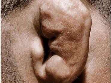 Kocsmai harcosok és birkózók jó ismerőse: ez a deformitás a fülkagyló ismételt sérülése miatt alakul ki. Az ütések és csavarások hatására a fül porcos részében elszabadult gyógyító folyamat okozza az esztétikailag nem kívánt látványt. A folyamat nem visszafordítható, csak plasztikai sebész képes korrigálni a roncsolt porcot.