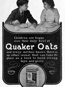 Szeretem olvasgatni a nagy múltú, régi cégek történeteit. Ilyen az amerikai Quaker Oats is, az egyik legnagyobb reggelizőpehely gyártó cég. (Ez a reggelizőpehely elég hülye kifejezés, de ezt az élelmiszerkategóriát így hívják.) Szóval ez egy 130 éves cég, és elsők voltak, akik márkanevet adtak a különböző gabonapelyheknek. Reklámtörténetileg azért jelentősek, mert ők készítették az első nemzetközi hirdetési kampányt a zabpehelynek. Azóta is az egyik legnagyobbak a pehelygyártásban. A honlapjukon kismillió egészségügyi tanácsot és szakcikket lehet olvasni, de a legjobb része persze nem ez, hanem a receptes oldal, amit szerintem a zabpelyhet nem szerető emberek is nyálcsorgatva tudnak csak végignézni.