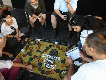 Felkészült játékostársak közé kerültem, egy mozgássérültekkel foglalkozó alapítvány két munkatársán kívül az ELTE-n tanító, gender témákra érzékeny pszichológusnővel - és játékon kívüli segítőtársával, és egy kulturális antropológia hallgatóval vettük körbe a táblát. Ez utóbbi lány az elmondása szerint tizenkét cigány nyelvjárásban beszél, szabadidejében pedig gyermek és ifjúságvédelemmel foglalkozik. Nekem nincs ilyen színes pályaképem, szerencsém volt viszont a Feladat kártyákkal húzható kvízkérdésekkel, azok inkább érdekesek voltak, mint nehezek.