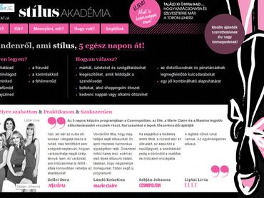 A Stílusakadémia 5 nap alatt varázsol a nőkből stílusos nőt. A 45000 forintba kerülő tanfolyam árárban egy 20000 forintos ajándékcsomag és negyed éves előfizetés is jár a hölgyeknek, akik a Cosmo, Marie Claire, Elle és Maxima szerkesztőitől leshetik el a receptet. Az öt nap alatt főleg előadásokat lehet hallgatni a divatpszichológia, a bőrápolás és az alakformáló fehérnemű fontosságáról, de Kiss Szilárd stylist megmutatja azt is, mi a legjobb alak-, arc- és színtípus - jelentsen ez bármit. A 3. napon a nők megtanulhatnak sminekelni Gera Annától, illetve a "Hozzád illő illat!" megtalálásában is segítő kezet kapnak. A Sanoma meggyőzte Hajas László mesterfodrászt is, hogy tartson előadást a hajápolásról, a színekről és a trendekről, majd ezután egy huszárvágással áttérnek a nélkülözhetetlen ruhadarabokra. Aki kíváncsi, az a jövő stílustrendjeit is megismerheti. A tanfolyam minden bizonnyal legizgalmasabb része a személyi styling tanácsadás, mely 6 órán át tart. Ha ön kedveli a glossy magazinokat, akkor válassza ezt a tanfolyamot.