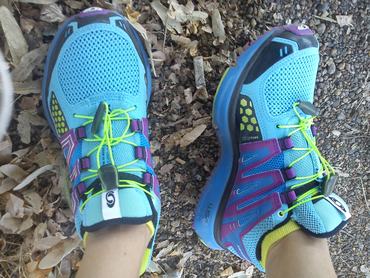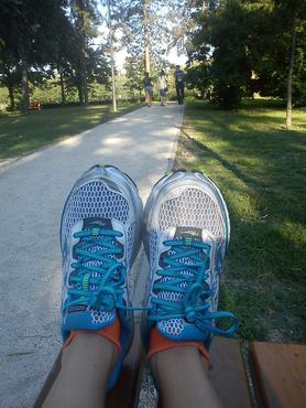 Paraméterek: egy cipő súlya 215 gramm, világklasszis terepfutócipő. Betonon nem túl kényelmes, de terepen (vagy a Margit-szigeti terrakottán) tökéletes. Az UTMB-t is ilyen cipőben nyerték meg, 168 km, 9600 m szintemelkedéssel.