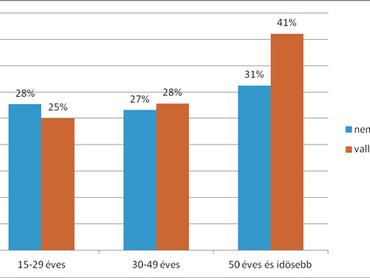 A magukat vallásosnak tartók és rendszeres templomba járók körében valamivel magasabb az elutasító attitűdűek aránya (36%), de az eltérés nem mondható jelentősnek. A fiatalabb korcsoportok esetében nincs szignifikáns eltérés a vallásosak és a nem vallásosak körében tapasztalható elutasítás arányában, az idősebbek esetében azonban a vallásosak nagyobb arányban nem szeretnének homoszexuális szomszédot, mint a nem vallásosak. Ez a vallásosak és a nem vallásosak közti különbség további lehetséges csökkenését vetíti előre.