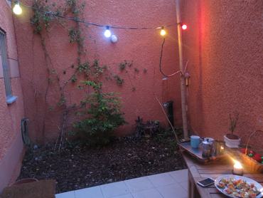 Ó, de csodás estefelé kiülni a kertbe/teraszra/erkélyre egy pohár borral, és csevegni a régen látott barátokkal... kivéve, ha az építtető semmiféle kültéri világításról nem gondoskodott. Persze nagyon romantikus lehet gyertyafénynél kokettálni, de lássuk be, egy ponton baromi idegesítővé válik, hogy nincs egy tisztességes fényforrás a kertben, hiszen sötétedés után se olvasni, se teregetni, se kertészkedni, se takarítani nem lehet odakint. Ezért szuper megoldás a kültéri égősor – nem a karácsonyi díszvilágításra gondolok, hanem a színes villanykörtékre, amelyek a romkocsmák kerthelységeit ékesítik. Én a konyhaablakon keresztül vezettem ki a kábelt a kertbe, a füzér másik végét egy fához kötöztem, és beújítottam pár színes égőt – persze nincs köztük két egyforma. Így fúrás, ásás, vakolás és betonozás nélkül, nagyjából 7000 forintból megúsztam a kerti világítást. Ami pedig a legjobb: a fényfüzér igazi fesztiválhangulatot varázsolt a kertünkbe, egész évre.
