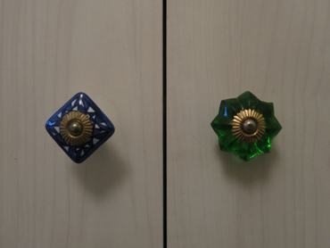 Világ életemben gyűlöltem a hatalmas szekrényeket, de amíg nem lakom akkora lakásban, hogy Carrie Bradshaw-féle „walk in wardrobe”-ot építhessek, kénytelen vagyok ilyen ormótlan intézményekben tárolni a ruháimat. Költözés előtt alaposan végignéztük a gardróbfelhozatalt, de – ahogy az az összes többi bútor – itt is vagy megfizethetetlen, vagy marha ronda darabokba futottunk bele. Még az Ikea-féle PAX ára is elég borsos tokkal-vonóval együtt. Végül a lehető legolcsóbb megoldás mellett döntöttünk: a bútorlapból eszkábált beépített szekrény lett a befutó, fehér faerezet-utánzattal ékesített ajtókkal. Ám hogy ne legyen túl sivár a dolog, feltankoltunk néhány, egymástól tökéletesen eltérő fogantyúval a bolhapiacon: van köztük színesre festett kerámia, egyszerű fa golyóbis és csiszolt üveg is. A hat pompás fogantyú azon nyomban karaktert adott a nagy fehér szekrénynek, én pedig már nem is akarok (annyira) Carrie-féle gardróbot.