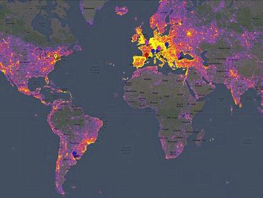 A sárga pontok jelölik a földrajzi tagekkel legtöbbször ellátott fotók helyszíneit, majd ezt követik a narancssárga, rószaszín és lila jelölések.
