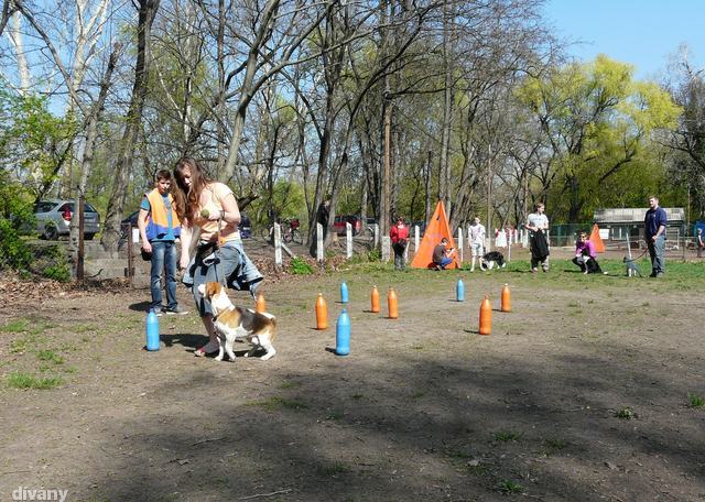 Van, aki azért hozta el a kutyáját, mert műtötték, emiatt elkényeztetett lett, de a legtöbb már a bemutatkozáskor elmondta, hogy agilityt és egyéb kutyasportokat tervez. Valójában egyikőnknél sem mentek az alapok sem. Most a hatodik hétvégére meg már eljutottunk odáig, hogy a próbavizsgán szinte mindenki átment.