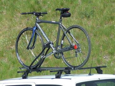 Ez a legelterjedtebb, pedig vannak hátrányai. Az egyik, hogy nagy légellenállása lesz tőle az autónak, így akár 1-2L-es többletfogyasztást is okozhat! Magas tempónál a bogarak szinte beleépülnek a váz lakkozásába, és nem keveset kell sikálni, mire megszabadul tőlük. A másik feladat, hogy már egy átlagos magasságú autó tetejére sem egyszerű felrakni a bringákat (hacsak nem 2 méter magas és nagyon izmos valaki), de a Nissan Pathfinderre való felcuccolás maximum rémálmaimban jöjjön elő. Induláskor nem árt a memóriába égetni, hogy másfél autó magasságával közlekedik (híd, aluljáró, felüljáró, mélygarázsok, belógó faágak), nehogy emiatt szakítsa le a bringákat a tetőről!