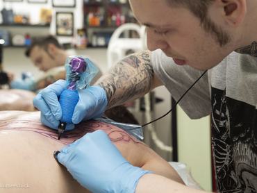 "Egy magára adó stúdióban csak egyszerhasználatos eszközöket (tűket, csőröket, szárakat, festékkupakokat, kiöntött festéket) használnak. A gépre és a vezetékre védőfólia kerül, amit használat után szintén eldobunk. Tetoválás közben folyamatosan krémezzük az igénybe vett bőrfelületet és fertőtlenítő folyadékkal átitatott papírtörlővel munka közben folyamatosan tisztán tartjuk a tetoválandó felületet. Ezek az egyszerhasználatos felszerelések nagyban hozzájárulnak a higiéniához és ahhoz, hogy tetoválás közben redukáljuk a fertőzés lehetőségét. (Az autoclave egy általános használatban lévő sterilizáló berendezés a tetováló stúdiókban, amit a legtöbb helyen a piercingező eszközök és a piercingek sterilizálására használnak.) A frissen tetovált vendégnek természetesen elmondjuk, hogy mire figyeljen a kezelés után, és írásban is kap egy átfogó emlékeztetőt. Felhívjuk a figyelmét a napi rendszeres kezelésre és arra, hogy ne menjen szoláriumba vagy nyilvános fürdőbe és lehetőleg ne tartózkodjon tűző napon, amíg az érintett bőrfelület meggyógyul" - magyarázza Pintér Elemér, aki 25 éve dolgozik tetoválóművészként.
