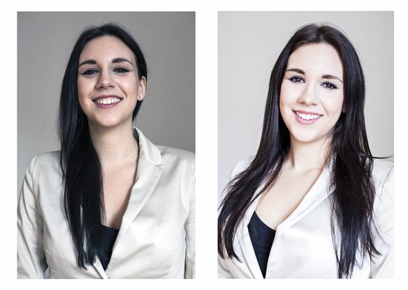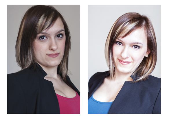 1. kép: A bal oldali kép ugyan semleges környezetben készült, ugyankkor a jobb oldali képen a megfelelő fényviszonyok és a barátságos arckifejezés valóban a pályázó előnyeit emelik ki.