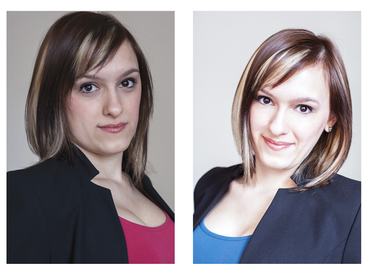 3. kép: A bal oldali kép ugyan mosolygós, és pozitív, a jobb oldali képen a visszafogottabb attitűd az irodai környezetben elképzelt állás esetén a pályázó előnyére válik.
