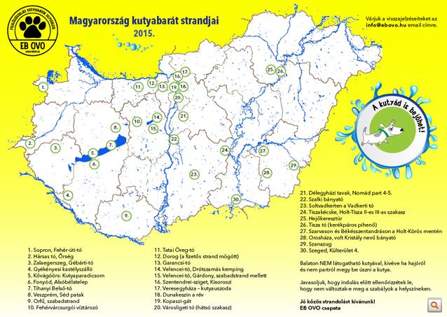 Ahogy tavaly, úgy idén is összeállította az EB OVO azon strandok listáját, ahova nyugodtan beviheti a kutyáját is, ha szeretné. A térképen nemcsak a 30 helyszín található meg, de kiderül róla az is, hogy a Balatonban (ahogy általában más természetesen fürdőhelyeken sem) nem fürödhet együtt a házi kedvenccel, kivéve, ha hajóról mennek be a vízbe.