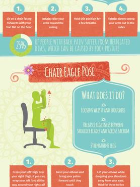 Ha ön is rutinos jógázó, akkor bizonyára elsajátította már az otthon végezhető stresszoldó és testtartást javító pózok csínját-bínját. De azért a munkahelyén az íróasztalánál ülve sem árt néha nyújtani egy nagyot, amikor úgy érzi, elfáradt a hosszas ücsörgésben és kikapcsolna néhány percre. A Visually infografikájának segítségével ön is gyorsan megtanulhatja a "székjóga" egyszerű és hatékony gyakorlatait. Íme: