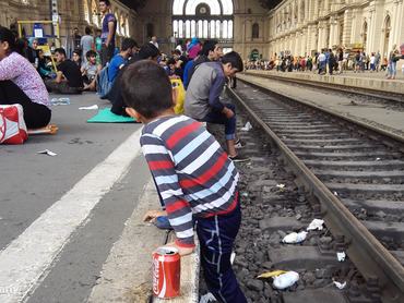 Én már rutinosan osztok, általában egy óriási zsákkal a vállamon szlalomozok a plédek, sátrak között és menet közben egy családhoz egy étkezési csomagot adok. A szokásos forgatókönyv szerint, "Miss, please!" felkiáltásokkal trappol utánam egy gyereksereg, akiket csupán azért hagyok figyelmen kívül, mert a távolabb sátrazó embereket is szeretném ételhez juttatni. Ha megállnék, két pillanattal később már nem lenne mit továbbvinnem. Mivel megszűnt a rendőrkordon, a vonatoknál is táboroznak, nekik osztom ki a maradék adagot, de mire egy fiatal társasághoz érek, elfogy a munícióm. Rezignáltan tudomásul veszik – hallottak ennél rosszabb híreket is a napokban – és visszaülnek a sínek mellé, kivéve egy fiút, aki a nyugatra tartó vonatokról kérdez, majd többször elmondja, hogy nekik muszáj továbbmenniük.