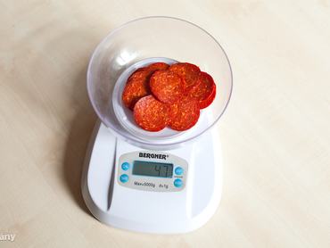 A cikk elején ugye írtuk, hogy a vastag- és végbélrák esélye már akkor 18 százalékkal nő, ha napi 50 gramm, azaz mindössze 5 dkg feldolgozott húst fogyasztunk. (A vörös húsoknál ugyanez napi 100 gramm és 17 százalék, de ez további igazolásra vár.) Fogtuk hát magunkat, és a boltban vettünk 50 gramm vastagkolbászt, csemegeszalámit, sertéspárizsit, füstölt sonkát és egy pár frankfurti virslit. Ha olyan madárétkű mint az egyik kolléganőnk, akkor nem fog összejönni a napi 5 gramm, de a másik tesztalanyunk sem eszik meg egy ekkora adagot - derült ki a nyilvánvalóan nem annyira reprezentatív felmérésünkből, amit csak a látvány és magunk megnyugtatásáért végeztünk el.