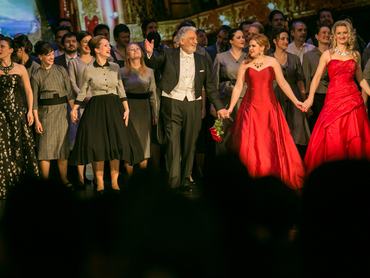 A Maestro már bevonulásával is tapsvihart kapott, a nézőtér pedig elnémult, amint belefogott az első áriába. A 75 éves tenor hangja még azoknak is lenyűgöző, akik nem mozognak otthonosan az opera világában, nyálasan hangzik, de tényleg betölti a teret lényével. A bécsi operabálról érkező énekes három számot vállalt be, ám az MTVA-nak sikerült az, ami keveseknek, nem tudtak rögzíteni, ezért Domingo újra színpadra állt, valahol pedig egy fej a porba hullott. A Besame mucho után már tombolt a közönség, 15 perces vastapssal ünnepelték Domingót, aki ezután karmesteri szerepre váltott, és elvezényelte a Traviata pezsgőáriáját is.