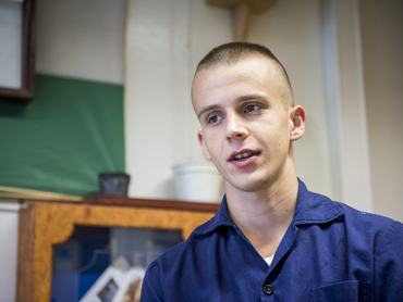 Martin hozzá képest öreg róka, a sokadik kutyát képzi itt. "Ha a fiatalkorú ítéletem engedi, akkor végigcsinálom Odin nevelését" - mondja a fiú, akit az előzetes nevelője javasolt a programra. És hogy miért jó ezt csinálni? "Addig sem vagyok zárkán, meg kikapcsol az ember, nem gondol bele, hogy börtönben van. Ja, meg jó, hogy a vakoknak tudunk segíteni" - válaszolja rutinosan. Martin sokat tanul, azt mondja, most már érti mit jelent, ha a kutya csinál valamit. "Elmagyarázta a törzszászlós úr, hogy három dolog van: kér, kap és jutalmaz. Ez általában az embereknél is így van: kérek, kapok és köszönöm". Három éve és három hónapja van itt, ez idő alatt megfordult tizenvalahány kutya a kezei közt. Az elválás nem könnyű, de jön mindig másik kutya a távozó helyett. "Irigyelnek a többiek, mert napi kétszer vagyok lent, hétvégén is lent lehetek (egyébként napi egy órát lehetnek lenn a fogvatartottak az udvaron - a szerk.). És hogy mi lesz később? "Mindenképp lesz kutyám, szarvasgomba-keresésre szeretnék kiképezni egyet. Itt bent egyébként két szakmát szereztem: kőművest és burkolót, valamint egy targoncakezelőt is. Örül neki édesapám, hogy addig is elfoglalom magam és tanulok."