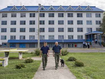 Mire odaérünk, Odin már a köröket rója két fogvatartottal. Martin és Kornél profin mozognak a rutinpályán, ami inkább kórház-, mint börtönudvarra emlékeztet. A kilenc hónapos fekete labrador igazi munkavonal, nem is baj, hogy nem olyan nagy - nyugtat meg Papp Béla telepvezető és kiképző, amikor rácsodálkozom a méretére. A fél órás menetelés közben a kutya azt tanulja meg, hogy az akadályok előtt haladéktalanul meg kell állnia és le kell ülnie, ezzel jelezve a gazdának, hogy valami zavaró körülmény van.