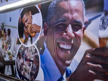 És meg is kérdezem, hogy miért döntöttek úgy, hogy egy óriási képet raknak ki a hamarosan leköszönő amerikai elnökről. Kita azt válaszolja, "mert Obamát mindenki kedveli", és azt is elmeséli, hogy ezek a fotók Vietnamban készültek Obamáról, aki állítólag nagyon közvetlen volt a helyiekkel és imádta az ottani ételeket. "Kétségtelenül elégedettnek tűnik a képeken" - válaszolom, és abban is legalább ennyire biztos vagyok, hogy ezen a budai környéken nem mindenki díjazza a Dang Muoi étkezdékre jellemző, finoman szólva eklektikus vonalat.