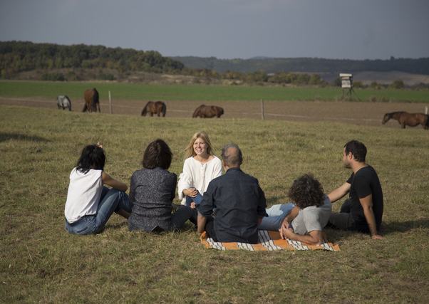 Korábbi cikkeinkben és feljebb erre már kitértünk, de dióhéjban a lényeg, hogy a ló nem tud hazudni és nem is áll érdekében, a mellettük dolgozó trénerek pedig segítenek megérteni és beépíteni a velük megélt tapasztalatokat. Mivel a lovak menekülő és prédaállatok, túlélésük záloga, hogy minden pillanatban tudják, ki a vezetőjük, akivel fenntartás nélkül együttműködhetnek. A lovak keresik és elfogadják a vezetőjüket, legyen az egy másik ló, vagy akár az ember, reakcióik az itt és mostra vonatkoznak. Az embernek pedig a workshopon egy másik világba, a lovakéba kell betagozódnia, így olyan élményekkel lesz gazdagabb, amit máshogy nem kaphat meg. A lovak közelében valamiféle hálával vegyült meghatottságot lehet megtapasztalni, ami nagyon természetes módon oldja a belső feszültségeket. Az már csak személyes indok a lovas tréning választása mellett – de szerintem sokan vagyunk ezzel így –, hogy imádom a lovakat.