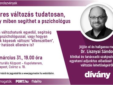 Jöjjön el és hallgassa meg Dr. Lisznyai Sándor klinikai és tanácsadó szakpszichológus, egyetemi adjunktus előadását a sikeres változás lehetőségeiről!