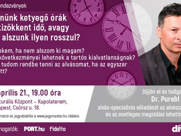 Ha szeretnél többet tudni az alvásról, érdekel, hogy miért alszol rosszul, és mit tehetsz ellene, gyereke el dr. Purebl György előadására április 21-én a MOM Kultba. Jegyeket a képre kattintva vásárolhatsz, további rendezvényeinkről pedig mindent megtudhatsz, ha feliratkozol hírlevelünkre.