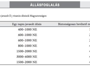 D-vitaminhiány megelőzésére javasolt D3-vitamindózisok Magyarországon: