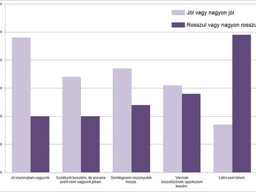 Ami a gyerekekkel való viszonyt illeti, tíz szülőből kilenc ítélte meg úgy, hogy jóban vagy nagyon jóban van velük. A kitöltők háromnegyedénél ez ráadásul a volt partnerükre is igaz, és mindössze 6 százalék számolt be arról, hogy a gyerekek rossz viszonyt ápolnak a másik szülővel. Ez az arány elsősorban azok körében volt egyébként magas, akik maguk is haragban voltak az ex-szel: náluk a 92 százalék jelölte, hogy nem csak hogy ők ki nem állhatják, de a gyerek(ek) sem szereti(k) a másik szülőt.