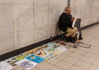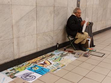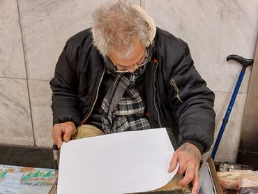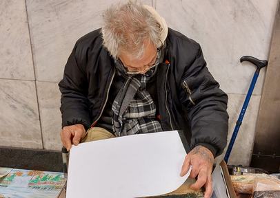 Reggel nyolc óra. István tíz ujjával öleli körbe barna műanyag poharában gőzölgő kávéját, azt mondja, ő ezzel tud túlélni a hidegben. Az élete két táskában áll összecsukható széke mellett az aluljáró hideg kövén. Itt sorakoznak az ezer színben pompázó rajzai is, amelyek többnyire szülőhazájának emlékeit őrzik. Hat hónapja él az utcán. Interjú.