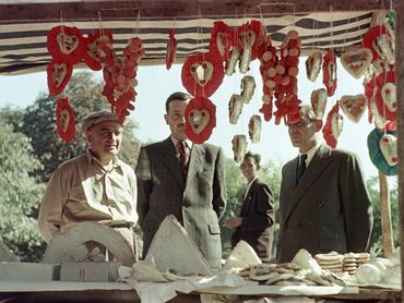 Személyes kedvencem a falusi búcsúk kínálata volt: rózsafüzér formába fűzött mézeskalács piros-sárga színben, tükrös szívek, no meg a kakasos nyalóka, aminek közepébe amolyan szocialista kindertojásként műanyag játékokat rejtettek.