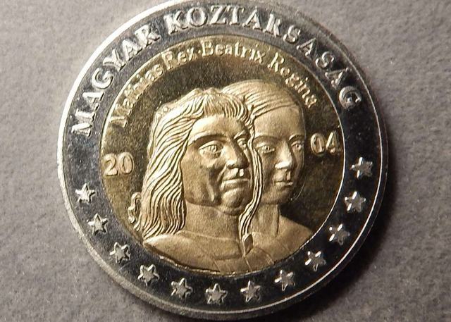 Ez az változat például egyik oldalán Mátyás királyt és Beatrixet ábrázolja, míg az írás mellé a Phoenix nevű legendás balatoni gálya került. Ez a 2 eurós érmeterv például 5000 forintért kelt el a Vaterán.