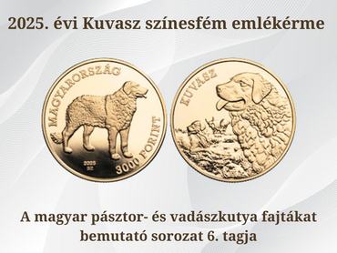 A magyar pásztor- és vadászkutya fajtákat bemutató sorozat 6. tagja, a 2025. évi Kuvasz elnevezésű 3000 forint névértékű színesfém emlékérme forgalmazását 2025. október 6-án kezdjük meg – írták Facebook-oldalukon.