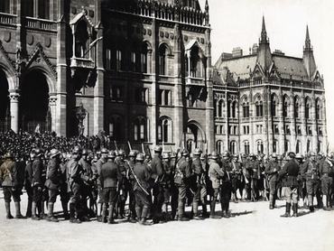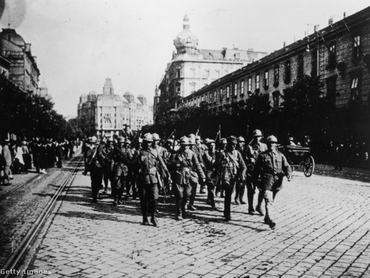 1919. augusztus 4-án Budapesten a Rákóczi úton, a Baross utcában és az Üllői úton román katonák jelentek meg. A csapatokat lovas kürtösök vezették, utánuk következtek a lovas katonák, majd a gyalogos tüzérek. Vezetőjük, Holban tábornok azzal fenyegetőzött, hogy ha ellenállást tapasztal, bombázni fogja a magyar fővárost.