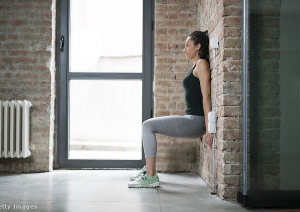 Az izomerőt mérő falhoz ülős tesztet így végezheted el: állj háttal a falnak, lábaid legyenek csípőszélességben. Nyomd a hátadat a falnak, majd csússz le addig, hogy a térdeid derékszögben legyenek – a lábszárak függőlegesek, a combok pedig párhuzamosak a talajjal. Tartsd ezt a pózt, ameddig csak bírod, anélkül, hogy a kezeddel megérintenéd a combodat vagy a térdedet.