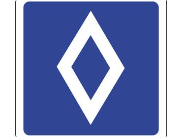 Egy új, különös kinézetű, kék alapon fehér rombusz jelzéssel ellátott közlekedési táblát helyeznek ki egyre több helyen Európában.