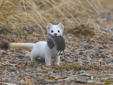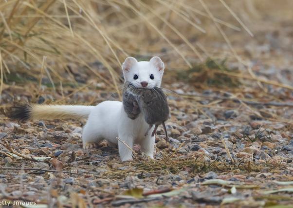 A hermelin a hideg hónapokban hófehér bundát növeszt, amely a hó elolvadása után könnyen észrevehetővé teszi a réteken.