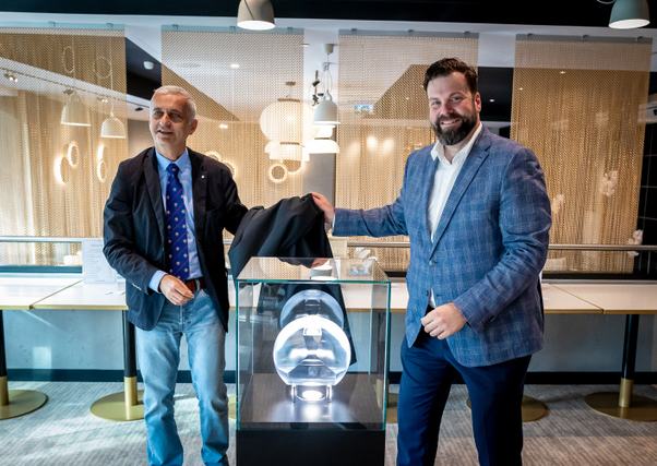 „Fontosnak tartjuk, hogy a Budapestre érkező nemzetközi vendégek a világhírű magyar tudományos eredményekkel találkozzanak, ezért ennek egy szimbólumát, a Gömböcöt állítottuk ki a hotelben” – mondta Janssen.