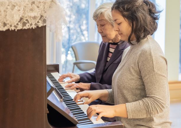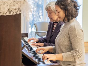 A demenciában élő emberek zenélése javítja kommunikációs készségeiket és koncentrációjukat. A beszédet és a nonverbális kommunikációt is javítja a zenehallgatás vagy az élő előadások megtekintése. Még a hangszeren való játékra való ösztönzés is javítja a demenciában szenvedők hangulatát.