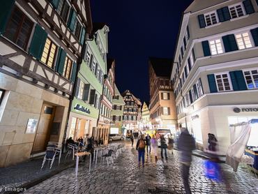 Tübingen városképe az esti órákban. A polgármester a város kivilágítását is csökkentette