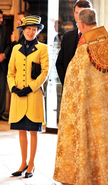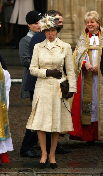 Klasszikus krémszínű kabátruha a Westminster Abbey-ben 2007-ben.