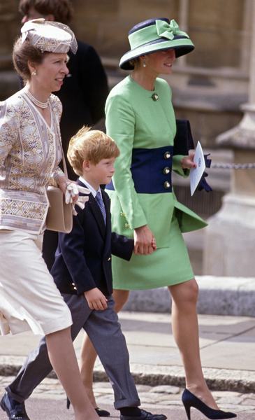 Anna hercegnő, Diana hercegnő és Harry herceg Windsorban.