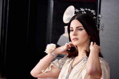 Másik személyes kedvencünk Lana Del Rey, aki szintén Guccit visel, de egész más stílusban utazik, mint Elton John. Tökéletes smink és egy mennyei, csillagos tiara!