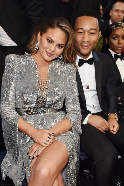 Chrissy Teigen talpig csillogóban bulizott, de ez sem volt elég neki! Ujjain Ofira Jewels fekete és fehér gyémánt gyűrűk.