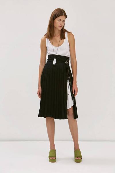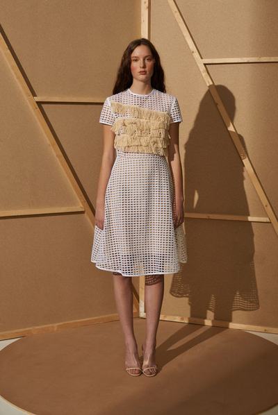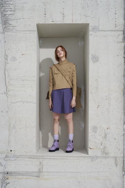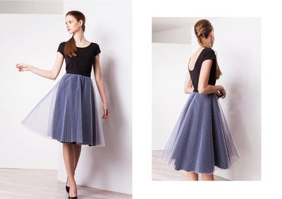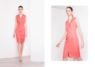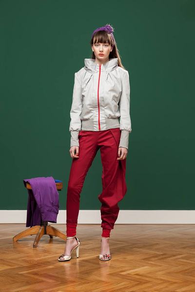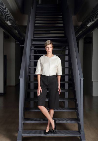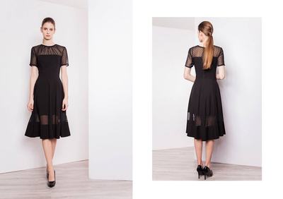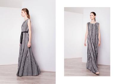 "A kollekció a márkára jellemzően kontrasztra épül: a pliszírozott betétek a vékony, áttetsző tüll, orkán, puplin, selyem és bőr anyagokon kemény és tiszta, minimalista érzetet adnak a ruháknak."