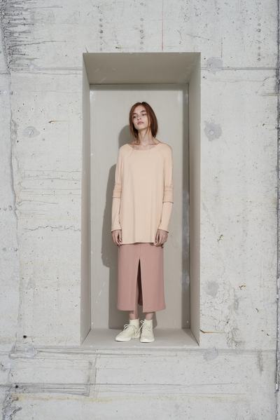 "Míg a redőzött, az emberi test vonalánál levarrt, nagy formákból szabott darabok a varrás mellett lehulló anyagtöbblettel, amorf jellegükkel puha, finom, nőies vonalat képviselnek."- áll a Nubu sajtóközleményében.