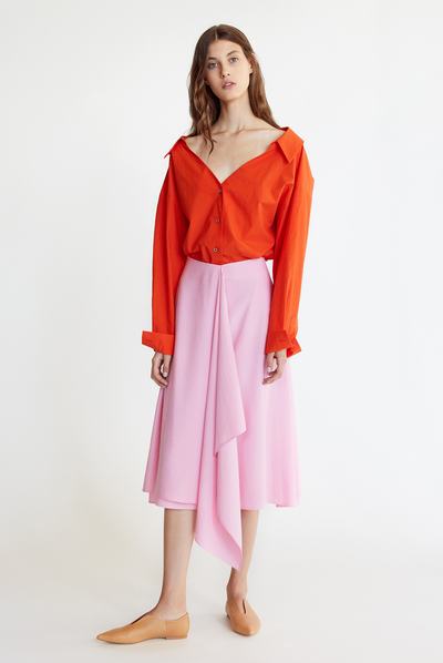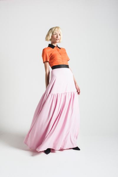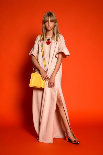 A Celeninél a púder, a narancs, a babakék, az óceánkék és a piros színek a dominánsak a szezonban. A fodros ujjat kapott maxiruha 65 900 forintba kerül.